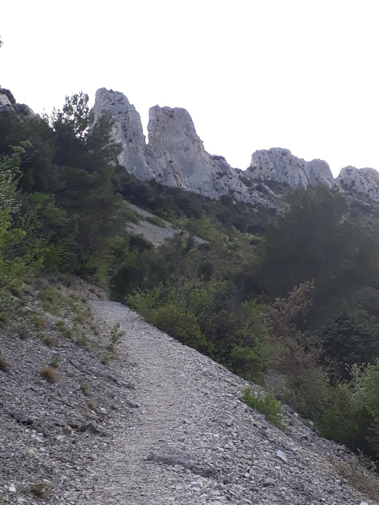 Arrive Groseau, c’est le dernier quart qui commence, les 2 premières féminines me faussent compagnie et termineront respectivement 35min et 8min devant moi, chapeau d’avoir tenu le rythme jusqu’au bout. Pour moi c’est la partie la moins drôle car ça y est, je suis entamé physiquement (les quadris et ma tendinite qui me chatouillent, normal elle n’était pas encore guérie à 100%). Cette portion n’est pas impressionnante sur le profil mais se révèle difficile car très technique (encore) avec beaucoup de relance (terrain de jeux génial quand t’es frais). Mais maintenant j’ai l’avantage de l’expèrience (punaise je parle comme un vieux 👴), je rentre en mode guerrier, m’équipe de mes écouteurs et avance coûte que coûte. C’est toujours aussi beau, les paysages ressemblent à l’Aveyron, on est pas nombreux sur le chemin. J’ai secrètement envie de finir avant la nuit, pas envie de remettre la frontale, mais les Dentelles de Montmirail ne sont pas de cet avis.