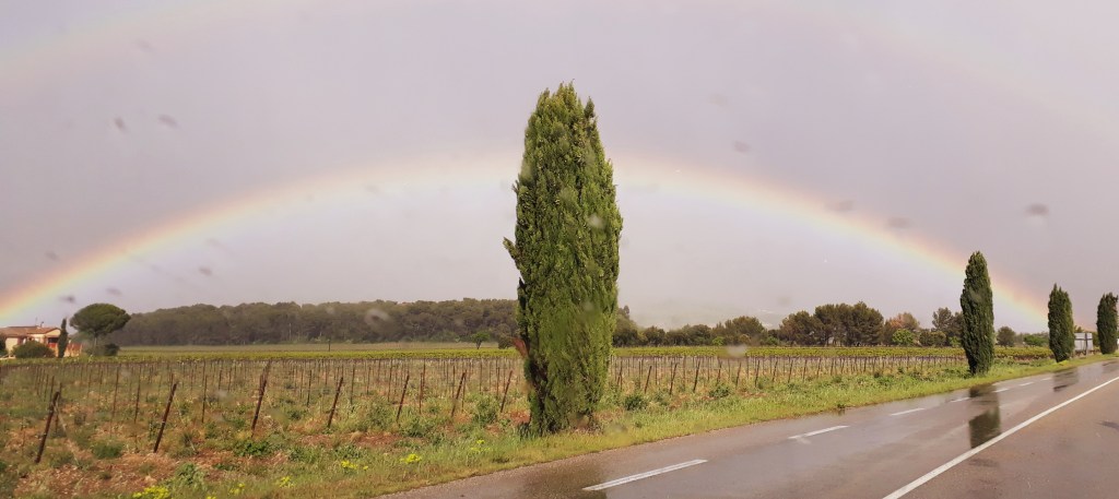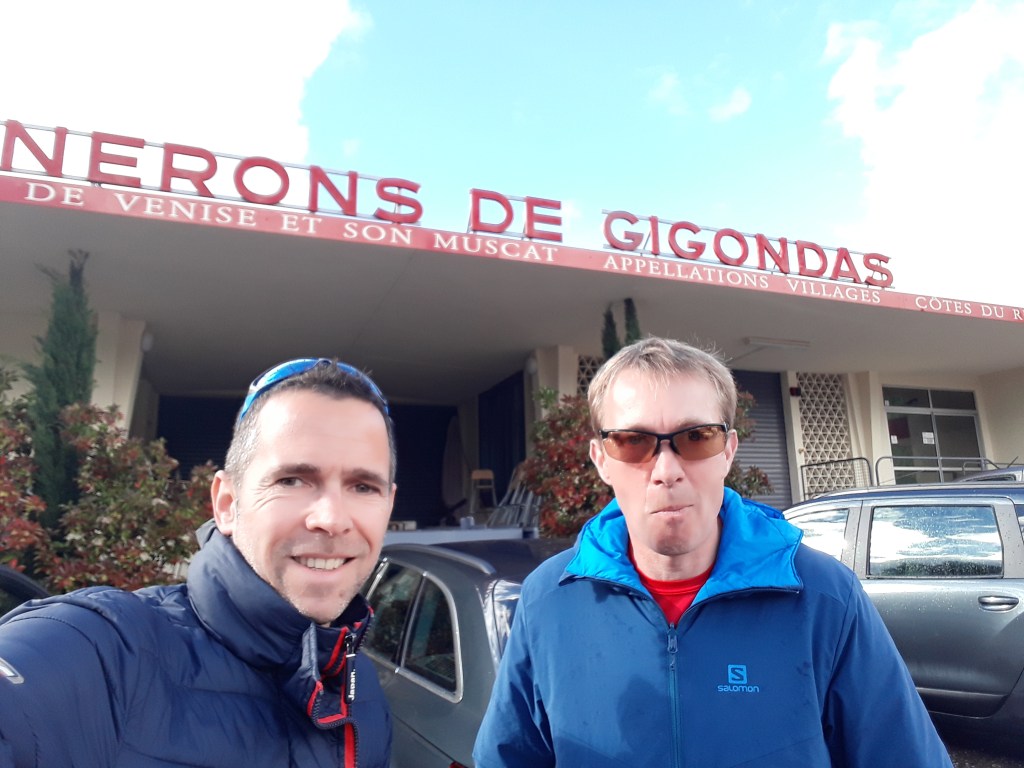 Arrivés à Gigondas vers 18h00 sous l’orage (une nouvelle région pour ma part à découvrir) direction la cave à vin pour …le retrait des dossards !! Ca commence très bien car on nous offre une bouteille de vin rouge et j’adore les vins de cette régions, Gigondas, Vacqueyras 🍷🍷…Ensuite petit tour au village et là je négocie mal un virage, ne vois pas le bout de caillou qui dépasse de la vieille maison !! C’est gagné le van ramènera une belle cicatrice de cette aventure 😭… A ce moment précis, j’espère que le week-end se déroulera mieux..