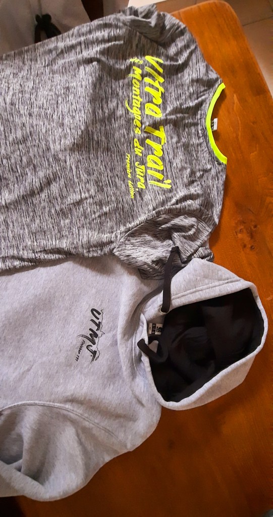 Je sers les dents pour finir correctement cette course, que c’est bon d’entendre au loin la sono de l’arrivée, comme d’habitude j’ai une pensée pour mon papa à ce moment, c’est très fort comme introspection, je vous le conseille à tous 😉… Après un dernier petit « coup de cul », j’attaque la descente vers l’arrivée, je retrouve Sophie, Vincent et François, c’est fait !! J’ai traversé en courant les montagnes du Jura !! 34h44 (+3h ajoutées par l’orga pour la fin amputée) soit 37h44 et une belle place 30/221 coureurs au départ. Nous ne sommes que 64 à franchir cette ligne, une boucherie, 71% d’abandons signe d’un parcours exigeant et de conditions dantesques, le Jura ne s’offre pas à toi, il faut aller le chercher… Preuve que ce trail de moyennes montagnes ne doit pas être abordé à la légère. François réalise une performance incroyable, 12ième en un peu plus de 33 heures, grosses félicitations 👏👏👏, tu es un véritable champion 💪, respect. J’ai appris beaucoup à l’entrainement avec toi et Vincent, merci les gars. Un beau sweat finisher et direction la bière du guerrier 🍺😋.