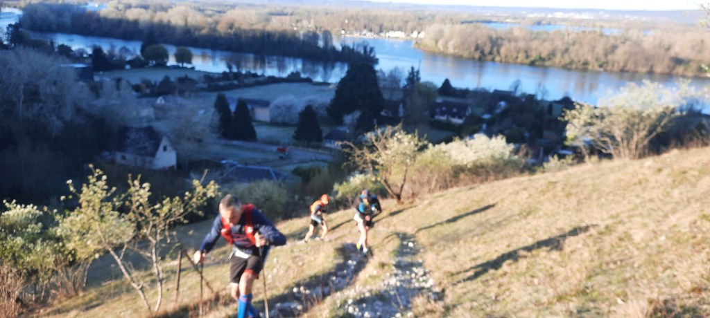 Après 4 km de champs roulants arrive la première patate qui en appellera d’autres, nous sommes sur un format de côte que l’on peut trouver dans notre Cotentin, en particulier dans la Hague, 100 à 150 m de D+ parfois assez pentus. Dès les premières montées je sens que je suis en jambes car je ne serai jamais essoufflés ni dans le dur, je monte avec facilité, je le remarque aux coureurs se trouvant autour de moi et qui peinent. C’est de bonne augure, Julien quand à lui est derrière et préfère temporiser ne se sentant pas dans une forme olympique.