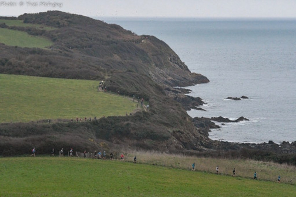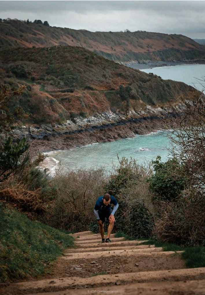 Puis c’est 30 km sur un beau sentier des douaniers, à relancer dans les virages. Les descentes et les montées s’enchaînent, quelques plages (Moulin, Godelins) cassent le rythme et absorbent nos forces. Il fait frais et beau, le décor salé est magnifique. Je perds beaucoup de force à slalomer entre les coureurs du 26km lorsqu’ils nous rejoignent sur le sentier 🏃♀️🏃🏃♀️🏃🏃♀️🏃.