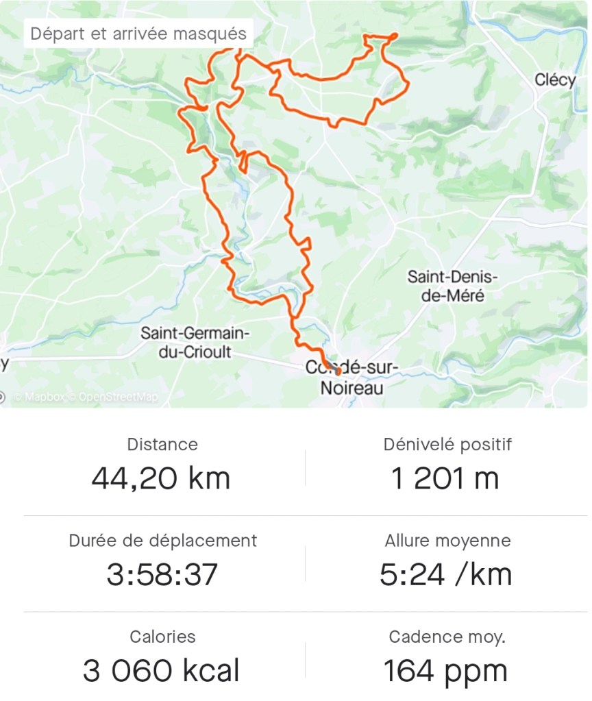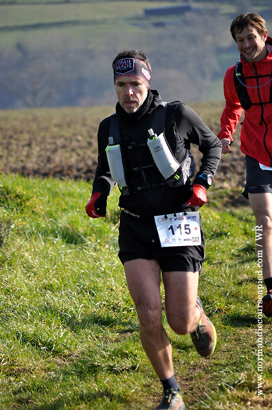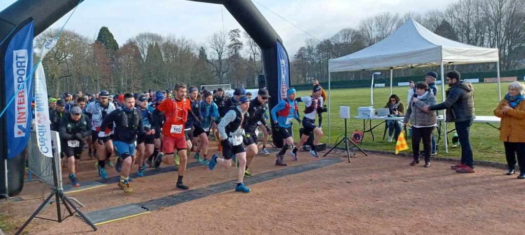 157 traileurs(leuses) alignés sur ce marathon trail pour découvrir les collines normandes. Le parcours est vraiment sympa, sans prétention, alternance de routes et chemins de campagne, pistes forestières (un côté Vosgien).