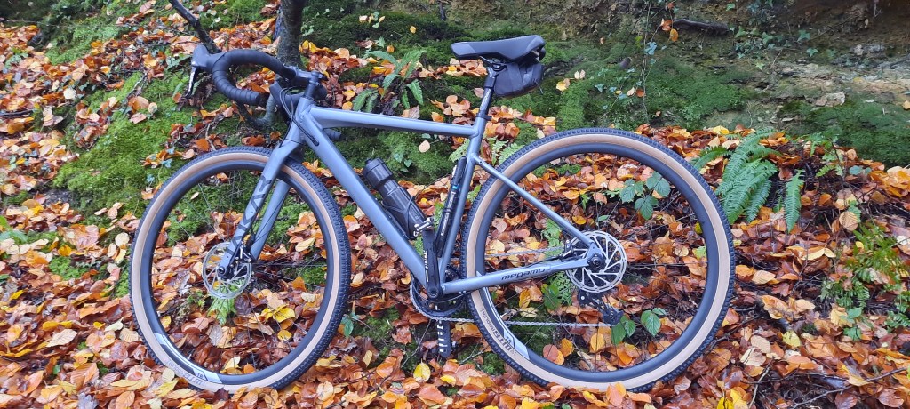 Avant de vous parler de la course, parlons un peu matos !! Après maintes et maintes repérages, chaîne YouTube et blog en tout genre, je suis parti sur un modèle alu milieu de gamme entre 1500€ et 2000€ : un Jakar20 de la marque espagnol Megamo. Équipé d’un mono plateau et de transmission et frein Sram Apex, bienvenue dans le monde très technique du cyclisme 🥵 tubeless, pédales auto et touti quanti…je n’irai pas plus loin dans la technique, des gens bien plus calés que moi en parle beaucoup mieux : merci à Stephane de la chaine youtube Gravel & Bike 👍