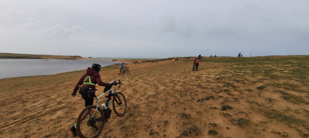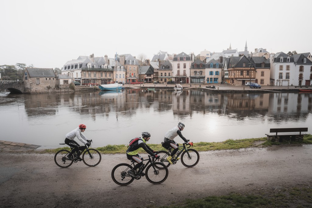 Le départ est donné sans fioriture, c’est parti pour quelques heures de pédalage, je suis excité comme un gamin, Greg est obligé de me calmer 🤭… le premier tiers du parcours se fait en bord de mer, direction Carnac. On traverse plein de petits villages de pêcheurs, le temps est gris mais c’est très joli.