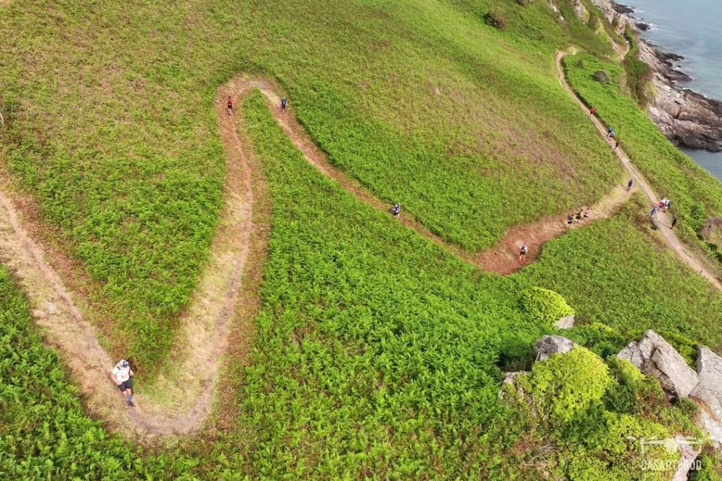 Je sais que ce sera une course difficile, de par son profil roulant les 75 premiers km puis cassant les 25 derniers. J’ai repéré 1 mois auparavant les 50 premiers km avec Caroline et Tony (futur vainqueur du raid de l’archange, je sais m’entourer de sparring partner de luxe 😁. Le profil est trompeur car les côtes du début se courent aisément alors que les 25 derniers km se font sur des plages de galets puis sur un sentier des douaniers hyper technique.