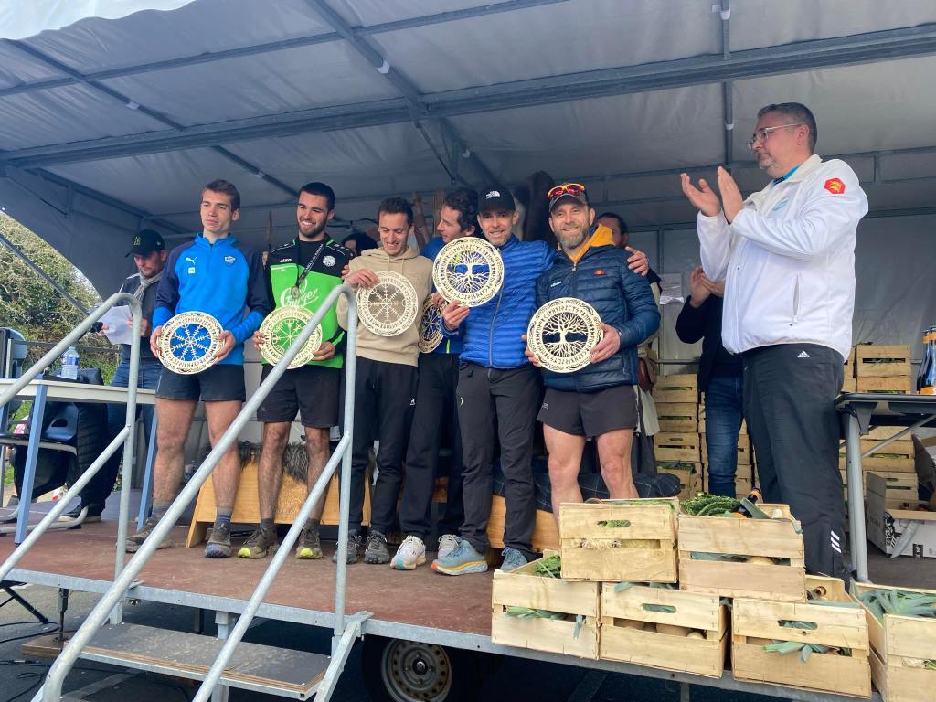 Cécé fait une 6ième boucle solide qui nous permet d’être à nouveau 3ième, je n’ai plus qu’à ne pas exploser dans la 7ème boucle pour conclure en beauté. Je ne me retourne jamais et décide de donner ce que j’ai dans les tripes, le plus dur est le petit Beaumont que je cours tant bien que mal, ça brule. Les 2 dernières côtes crament les mollets, mais ça passe et j’arrive sous l’arche sans savoir si le podium est gagné, mais les copains tout sourire 😃 me confirme la 3ieme place, top !! Les 4ieme finiront 1’40 derrière nous, belle bagarre, merci à eux 👍