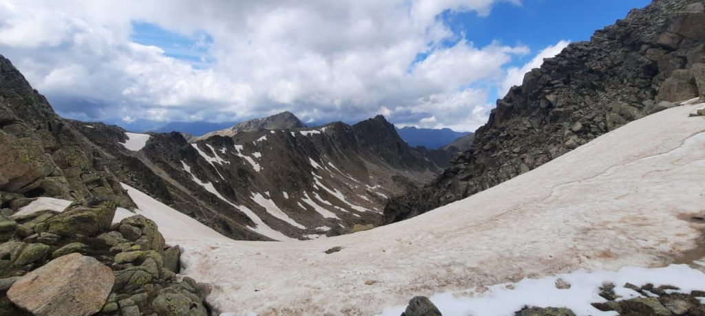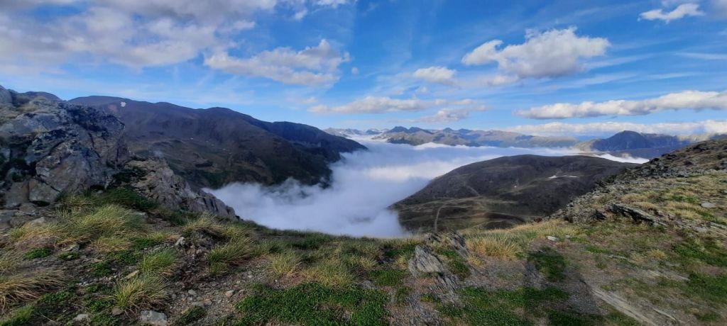 Sorti du pont, sur le papier il me reste une vingtaine de bornes avec une montagne entre 2, sur le papier ouais… Quand j’attaque la bosse je suis entamé physiquement, je décide de la monter sans m’arrêter pour souffrir moins longtemps, pas con le gars 🤓. Arrivé en haut, je passe sur un pierrier en plein vent, je suis pétrifié de froid, mes vêtements ne sont pas à la hauteur de l’engagement, le bonhomme également… Au sommet la trace nous fait passer au bord d’un précipice, je suis à ce moment pris de nausées 🤢 et dans une situation que je qualifierai de délicate, impossible de me poser ici, il faut que j’avance pour me trouver un abri et m’habiller avec tout ce que j’ai dans le sac. Enfin j’arrive à trouver un gros rocher à l’abri, je m’assoie, essaye d’ouvrir mon sac en bloquant mes tremblements tout en luttant pour calmer mes nausées. Je sais que le plus dur est fait et qu’il me reste qu’à descendre vers des températures plus clémentes, j’ai acquis une certaine expérience qui me permet de temporiser et prendre les bonnes décisions. Un coureur me propose son aide, c’est cool comme moment de convivialité. Une fois le pantalon et le manches longues enfilés, je repars vers le dernier ravito, le refuge de Sorteny.