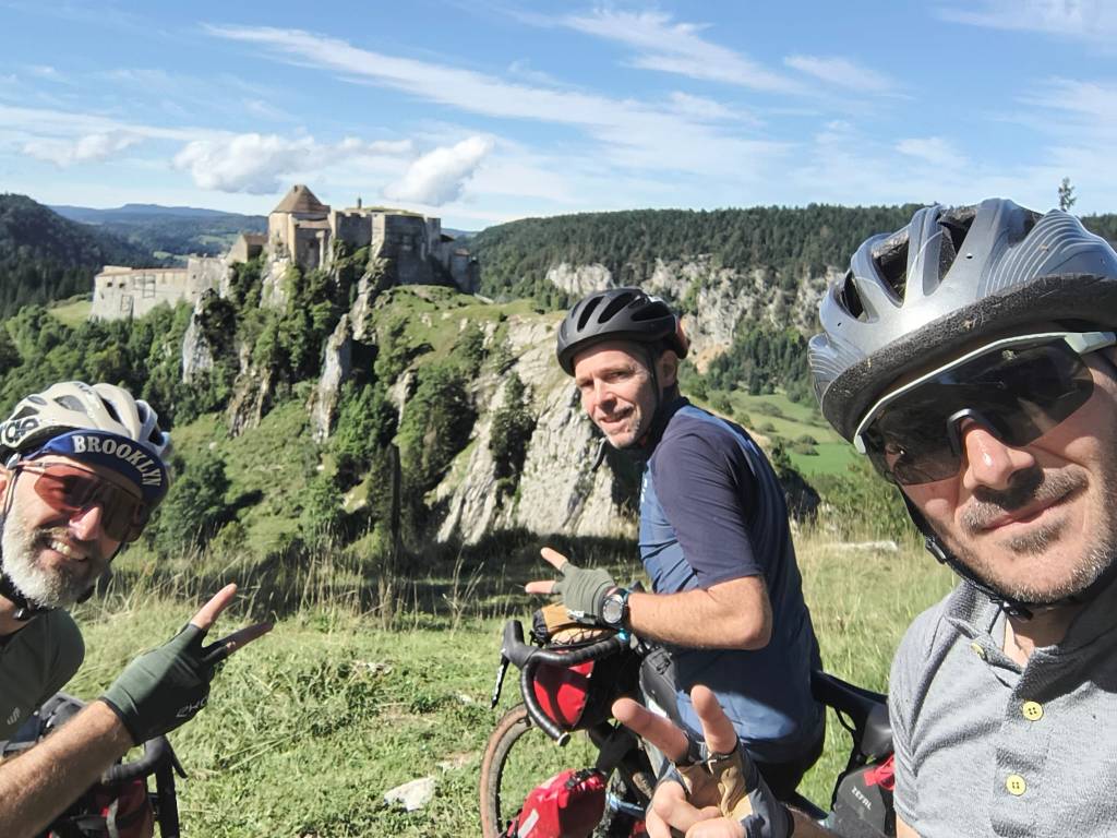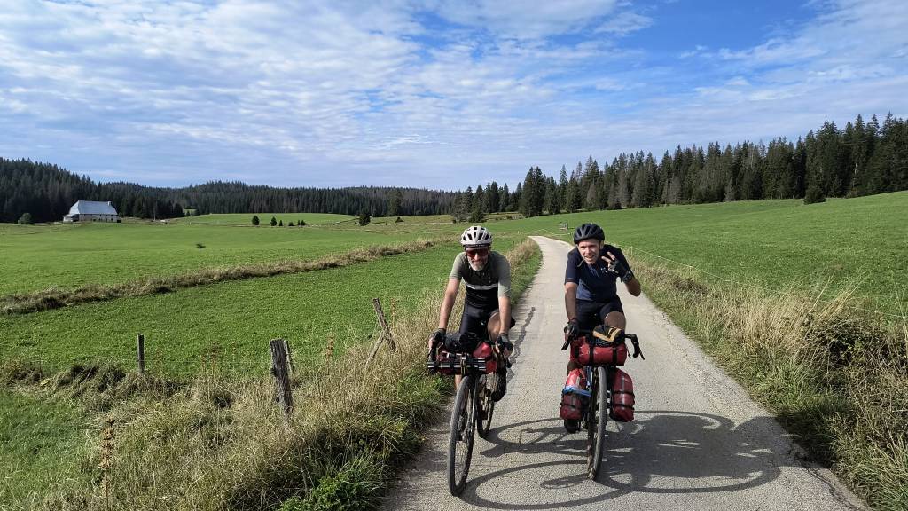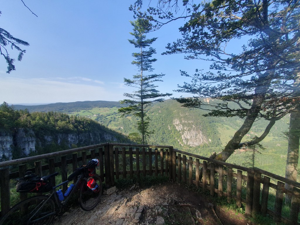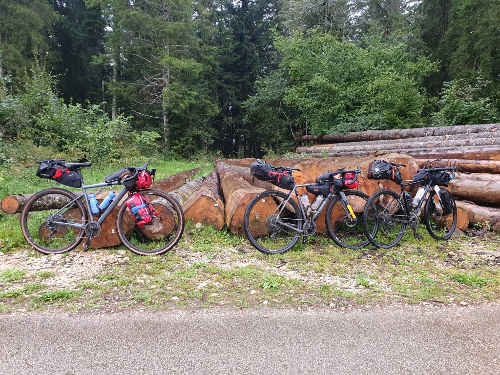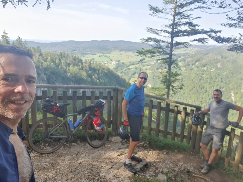 Çela faisait quelques temps que ça nous trottait dans la tête, depuis la virée dans le Morvan en 2023 : faire la traversée du massif du Jura par les chemins en vélo. Sur le papier c’était alléchant, avec ses 385km et 7250m de D+, ses chemins boisés, ses forêts de sapins, ses clairières, ses vaches eeeeet sa météo🙄 pouvant être capricieuse… Que cela ne tienne, ça serait le défi Gravel de 2024 pour Greg, Julien, Benoit et moi-même. Le découpage était simple, il fallait qu’on la fasse en 4 jours car avec le temps de route cela nous faisait partir 6 jours de la maison, un maximum pour préserver nos mariages 😉.