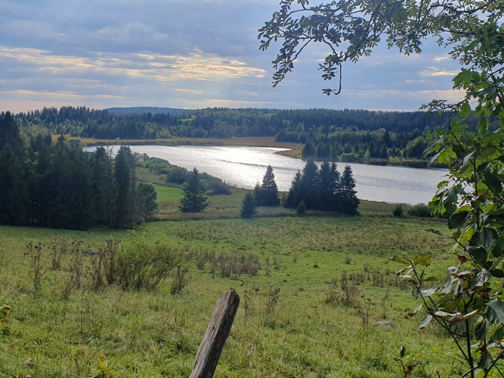 Après une bonne nuit au chaud, nous prenons un petit déj excellent à base de fruits, flocons d’avoine, miel, café bref idéal pour partir les batteries chargées à 100% (je recommande vivement cet Hotel). J’ai repris confiance et je me dis que la mésaventure d’hier n’était qu’un accident, peut-être une mauvaise alimentation en début de journée. Aujourd’hui s’offre à nous le plus beau ciel du Jura, bleu avec un soleil naissant et une brume matinale de toute beauté, quelle chance d’être là !!